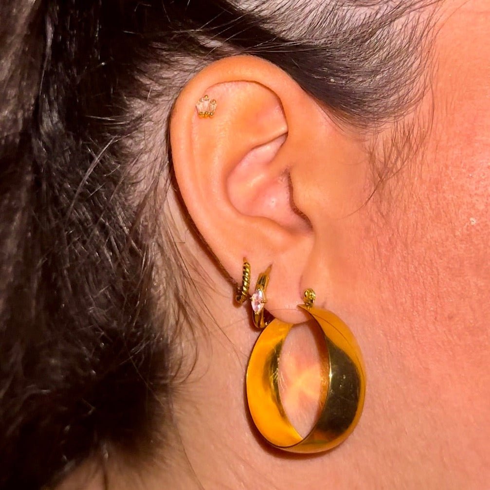 Fabriqué en acier inoxydable de qualité et plaquées or 18K. Elles sont résistantes à l'eau et ne ternissent pas, parfaites pour être portées tous les jours sans te casser la tête !